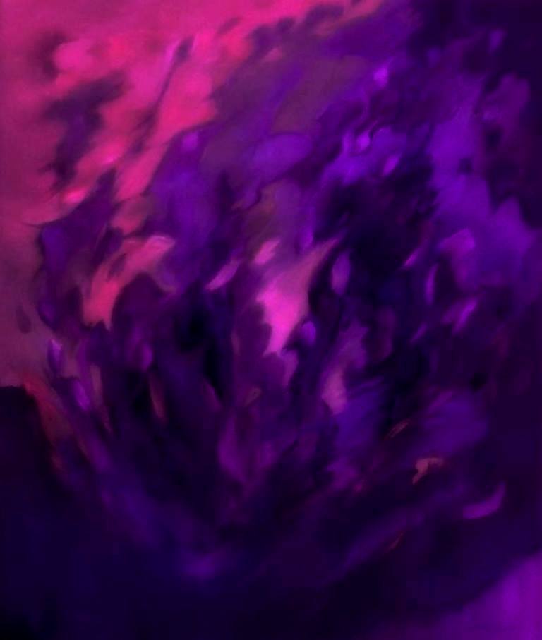Een licht herkenbaar abstract van een doorgesneden rode kool, waarin lagen en lijnen samenvloeien tot een purperen ritme. De groente wordt getransformeerd tot een spel van vorm, kleur en textuur — een ode aan het alledaagse in zijn meest expressieve gedaante.