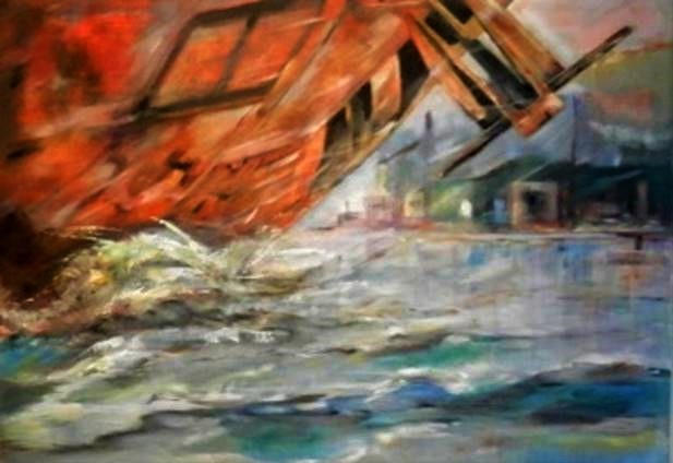 Het is natuurlijk geen toeval dat precies deze maand het Landshuis vol hangt met kunstwerken, die een link hebben met water en haven.