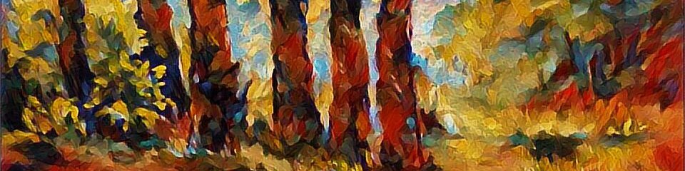 Een landschap in de warme gloed van de ondergaande zon. Het pad naar de horizon wordt geflankeerd door bomen in een palet van groen naar vuur. De scene straalt tegelijk verstilling en vernieuwing uit, als een ode aan het dunne uur van de dag.