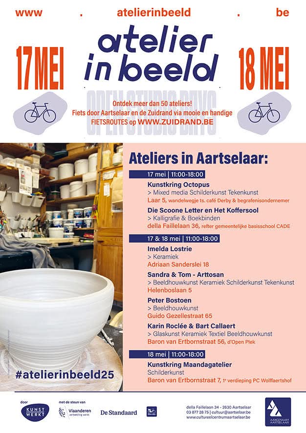 PS. Er zijn zeven locaties die deelnemen aan de Open Studio Days in Aartselaar. Het zal een levendig kunstweekend worden!